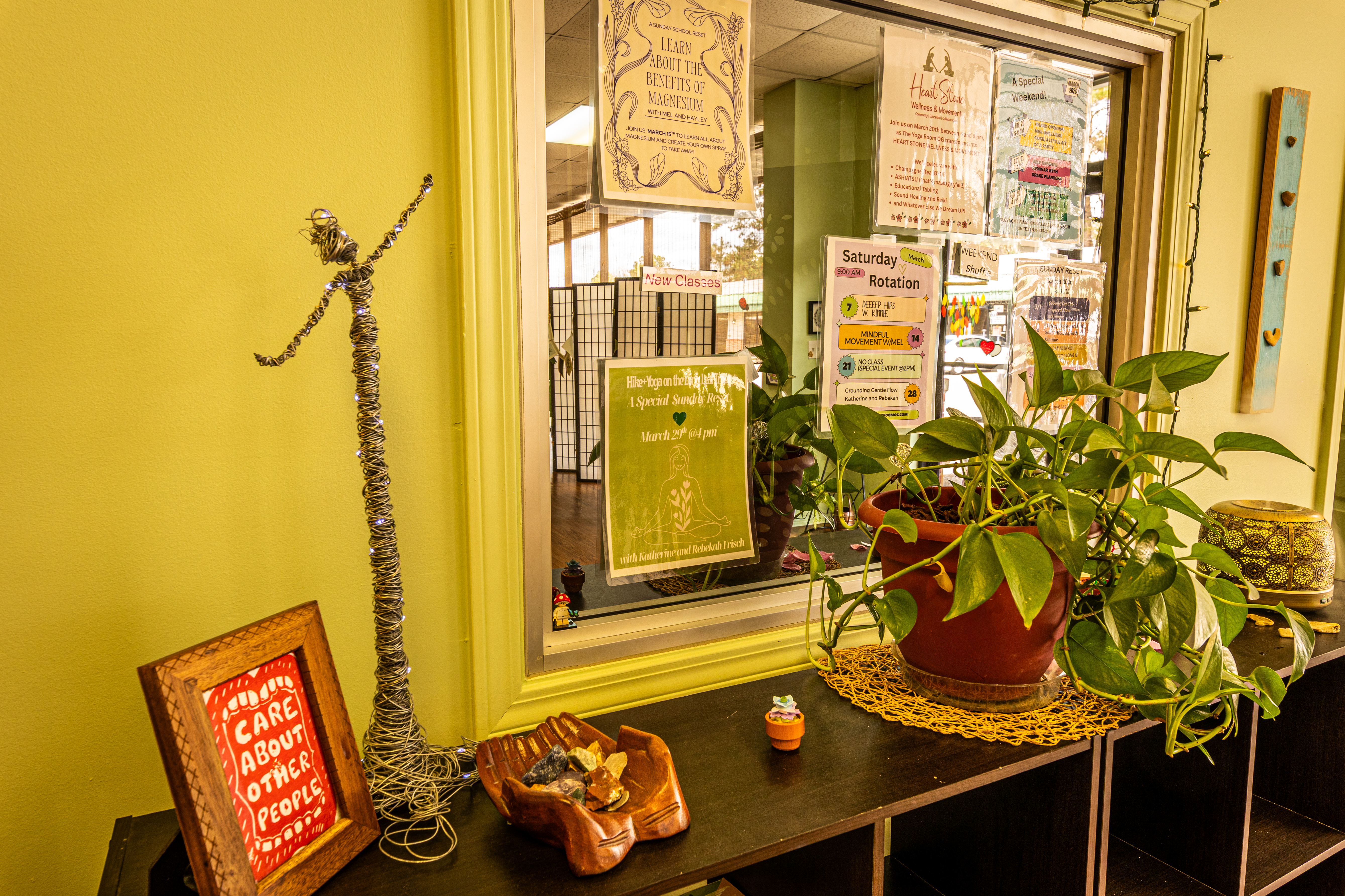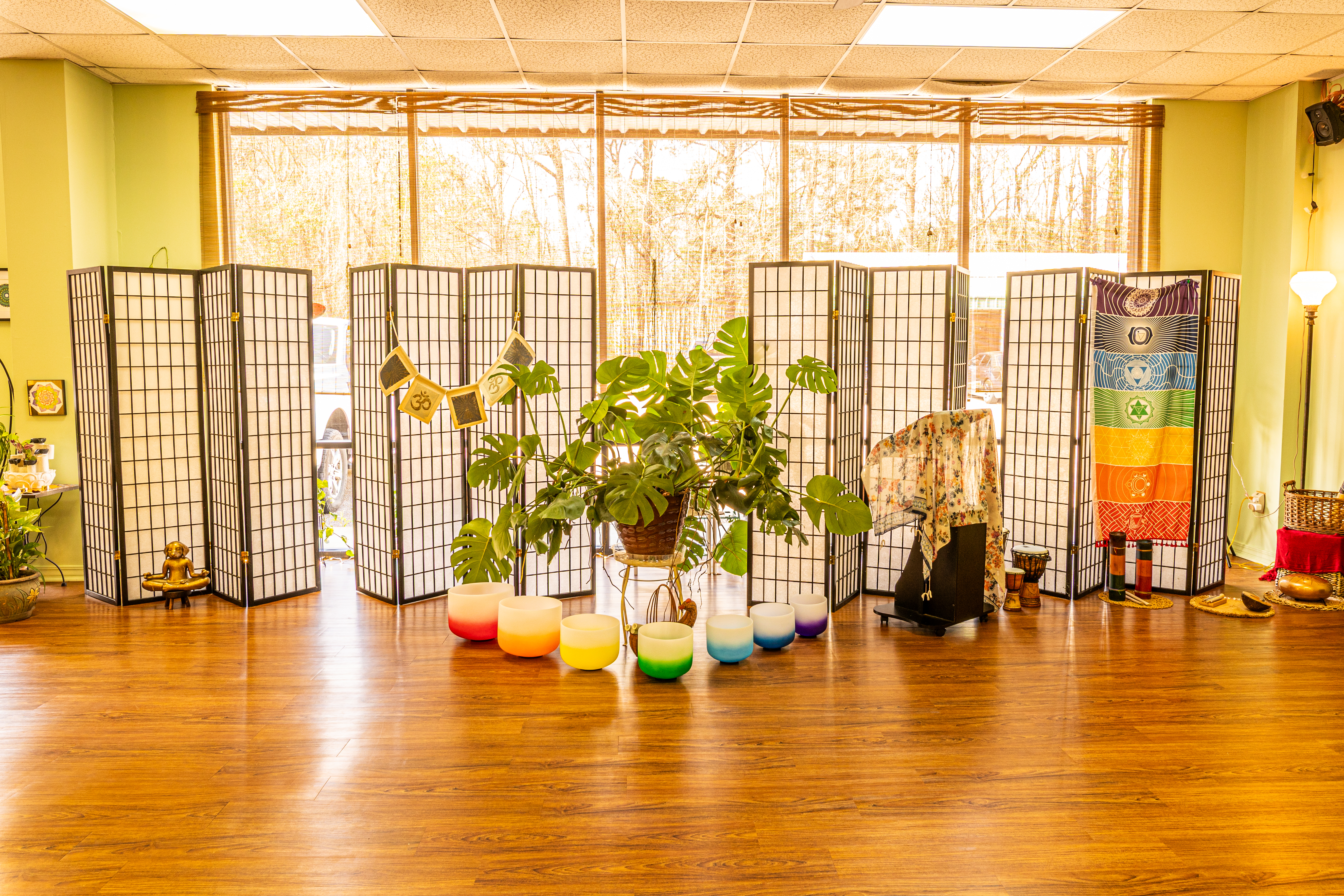 Our studio is a refuge from the noise of daily life, thoughtfully designed for the practice of yoga, meditation, and other healing arts. Whether you are seeking strength, stillness, or renewal, you’ll find an atmosphere of peace, inclusivity, and support. We invite you to step inside, breathe deeply, and join a community dedicated to well-being, growth, and connection. Come frazzled, leave settled.